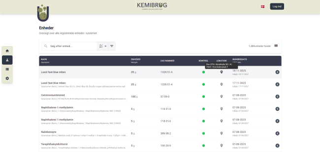 Den nye demo af beholdningslisten giver dig en langt mere moderne og intuitiv oplevelse. Layoutet er opdateret med et visuelt, responsivt design, hvor kemikalier præsenteres overskueligt og indbydende. Samtidig er søgning og filtrering forbedret, så du hurtigere kan finde de oplysninger, du har brug for. Alle relevante data – fra beholdninger og lagerplaceringer til SDS, CLP-mærkning og instruktioner – er samlet ét sted, så arbejdet bliver både nemmere og mere effektivt.